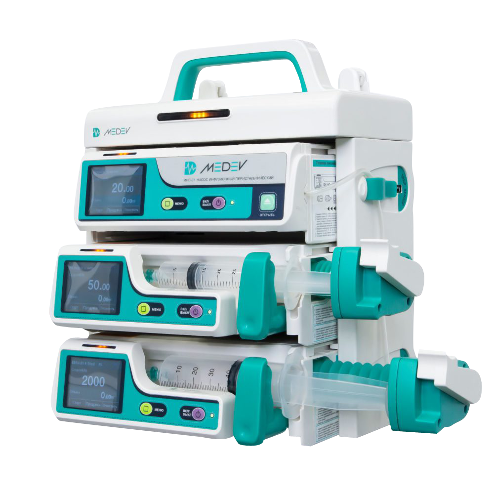 Инфузионные насосы и стыковочные станции MEDEV (АО "НПЗ", Россия) применяются в отделениях интенсивной терапии, анестезиологии и реанимации для внутривенного введения жидких лекарственных препаратов пациентам. Оборудование совместимо со всеми расходными материалами для внутривенной инфузии (системы являются открытыми) - это позволит экономить на закупке расходных одноразовых комплектов.